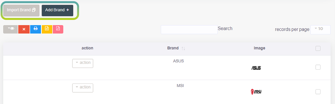 يمكنك إنشاء وتحرير وحذف علامات المنتجات التجارية. يمكنك أيضًا استيراد العلامات التجارية من ملف CSV. يجب اتباع التعليمات بدقة عند الاستيراد.